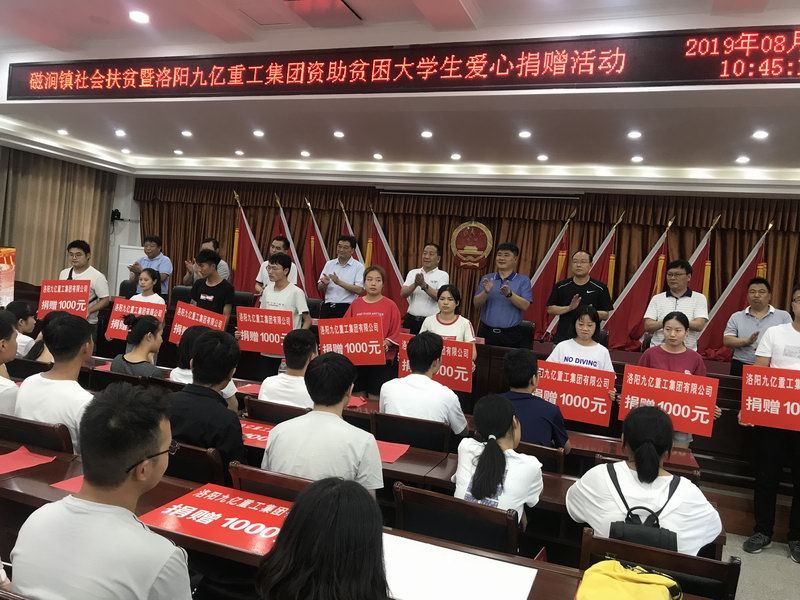 愛是與生俱來的,在血液里流動(dòng),在骨子里結(jié)晶,它源源不斷的由心而生,永不枯竭,只要人人都愿意奉獻(xiàn)一點(diǎn)愛,就如甘霖沐浴大地,人間處處盛開幸福之花! 為響應(yīng)洛陽市政府精準(zhǔn)扶貧政策,洛陽九億重工集團(tuán)有限公司及董事長王九茂積極參與捐資助學(xué)的慈善義舉活動(dòng),特做出如下決定:1、公司幫扶磁澗鎮(zhèn)2017年新招貧困大學(xué)生21名順利入學(xué),每人資助2000元,總計(jì)肆萬貳仟元整; 2、總經(jīng)理王九茂(縣政協(xié)委員)以個(gè)人名義資助磁澗鎮(zhèn)南窯村2017年新招大學(xué)生6名,總計(jì)12000元整; 我相信,在社會(huì)各界的大力支持和共同努力下,我們的“愛心助學(xué)”活動(dòng)將會(huì)惠及到更多的同學(xué),為了夢想,刻苦讀書、報(bào)銷祖國,廣大同學(xué)也一定會(huì)在溫暖的社會(huì)大家庭里茁壯成長,必將成為國家建設(shè)的有用之才! 洛陽九億重工集團(tuán)有限公司 董事長:王九茂